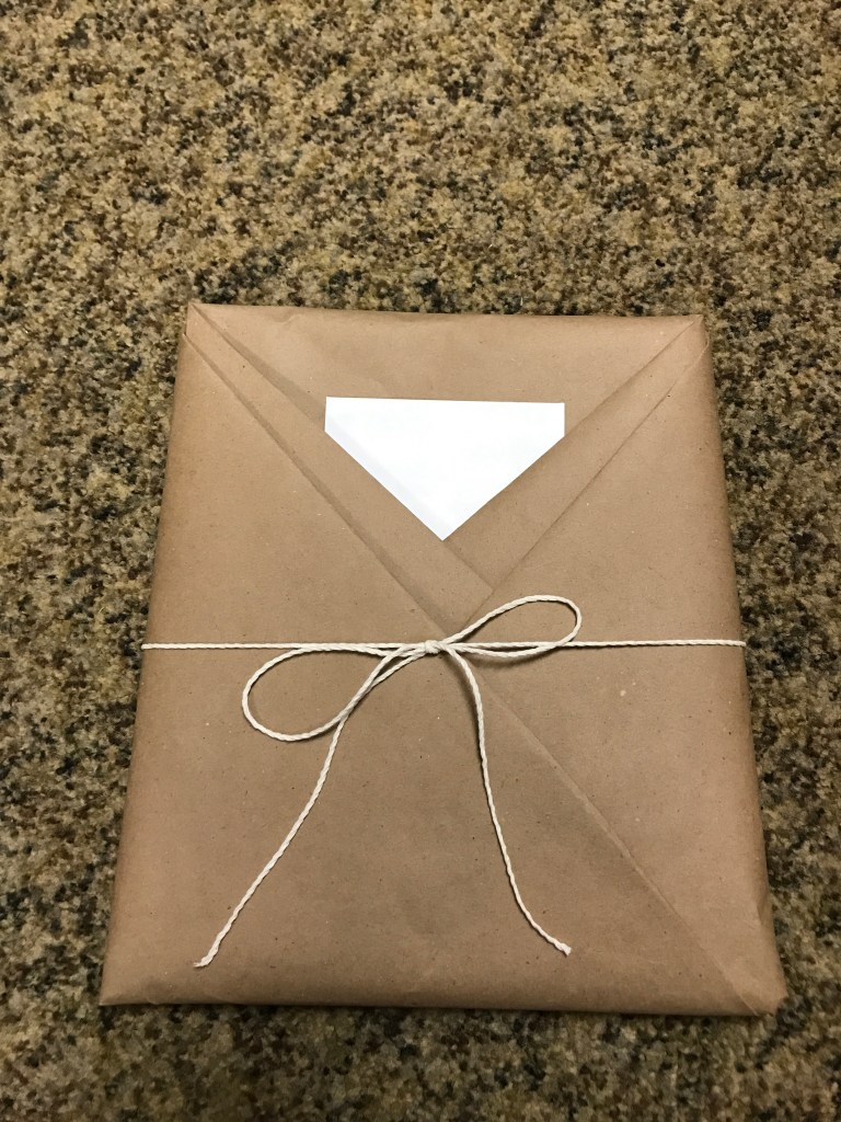 There’s not too much else to report this week! We’re getting excited for the Christmas season. I started wrapping my friends’ Christmas presents and I’ve been writing addresses on Christmas cards. I found this cool technique for wrapping presents on Pinterest and am having a lot of fun with it! It’s perfect because it has a built-in pocket for cards.