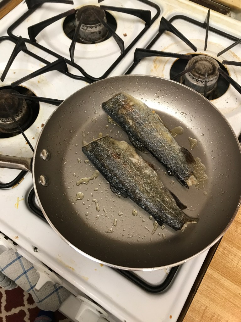 I did get to go fishing with my dad a couple of times this week! We had a lot of fun and caught some nice trout! They have made some yummy dinners for us!