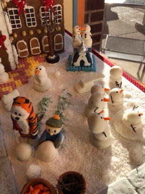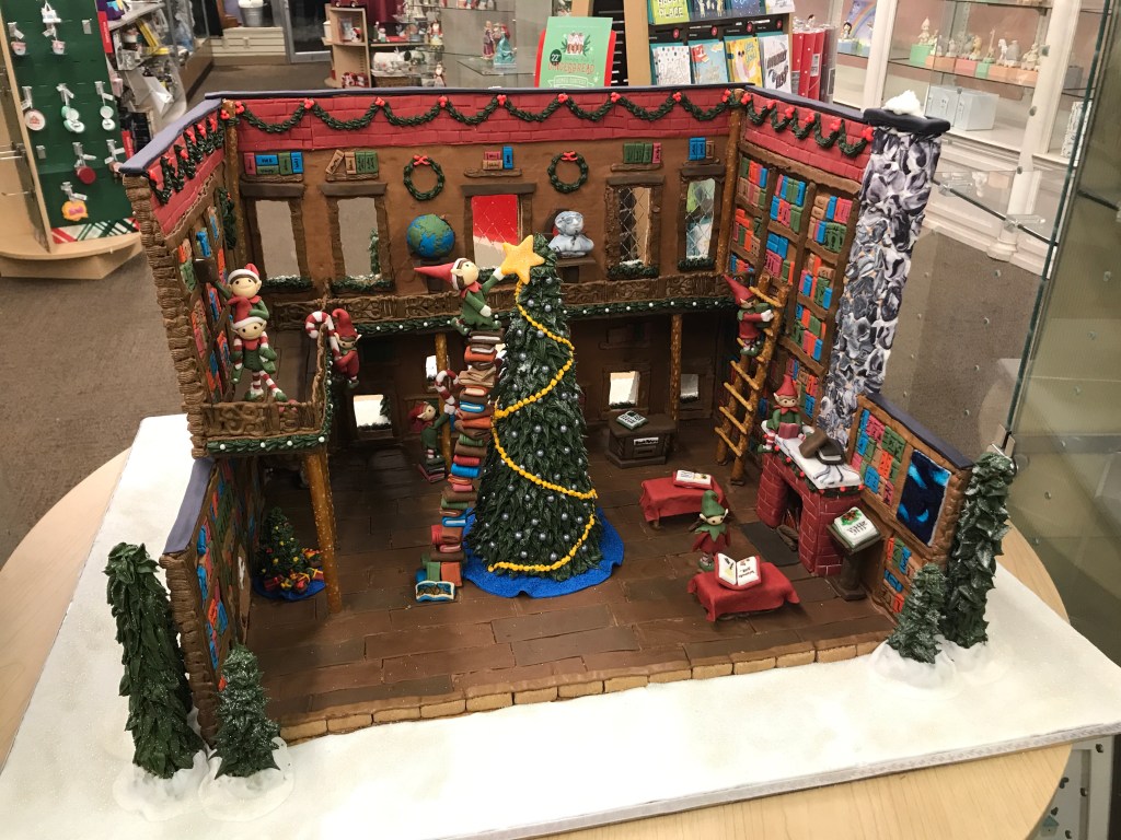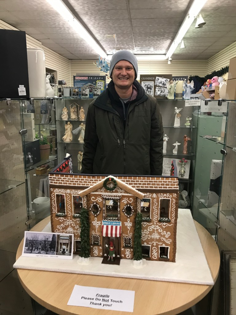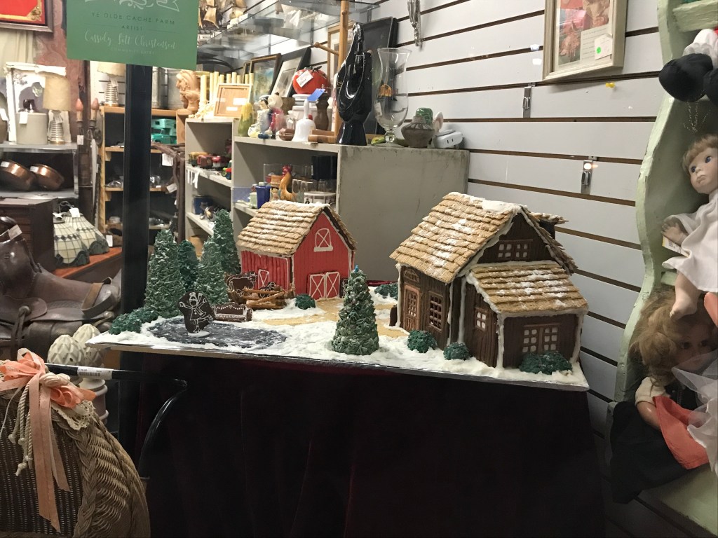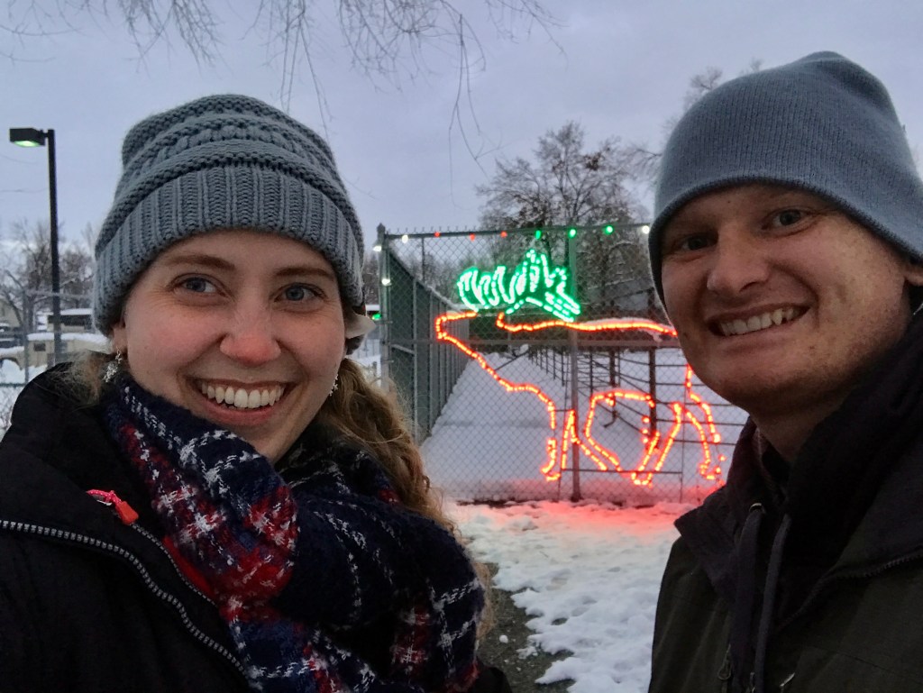 Wednesday, Mark was the one who had extra meetings! He and his professor were supposed to drive to Salt Lake City for a meeting but due to the snow and ice the meeting was moved onto Zoom (thank goodness for Zoom!!). That evening, Mark and I walked around downtown Logan to look at gingerbread houses that were on display. Our favorites were the elves’ library and Calvin & Hobbes making snowman on the quad. Mark also really liked the farmhouse and barn one!!