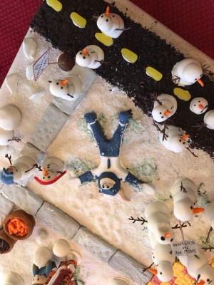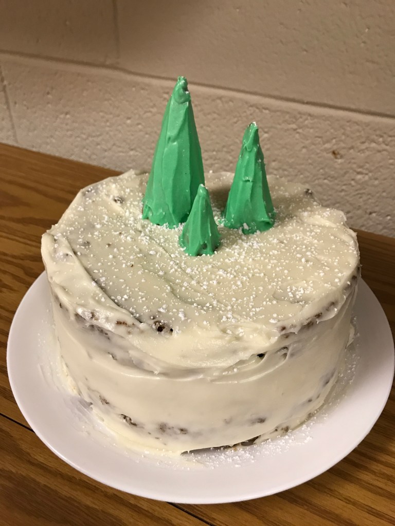 I decided to bake something from the Great British Bake off finale- a carrot cake. My pans ended up being too small and the batter overflowed into a huge mess! Luckily, I had the foresight to put a cookie sheet under the pans. My decorating wasn’t as good as I’d hoped, but the cake did end up tasting delicious.