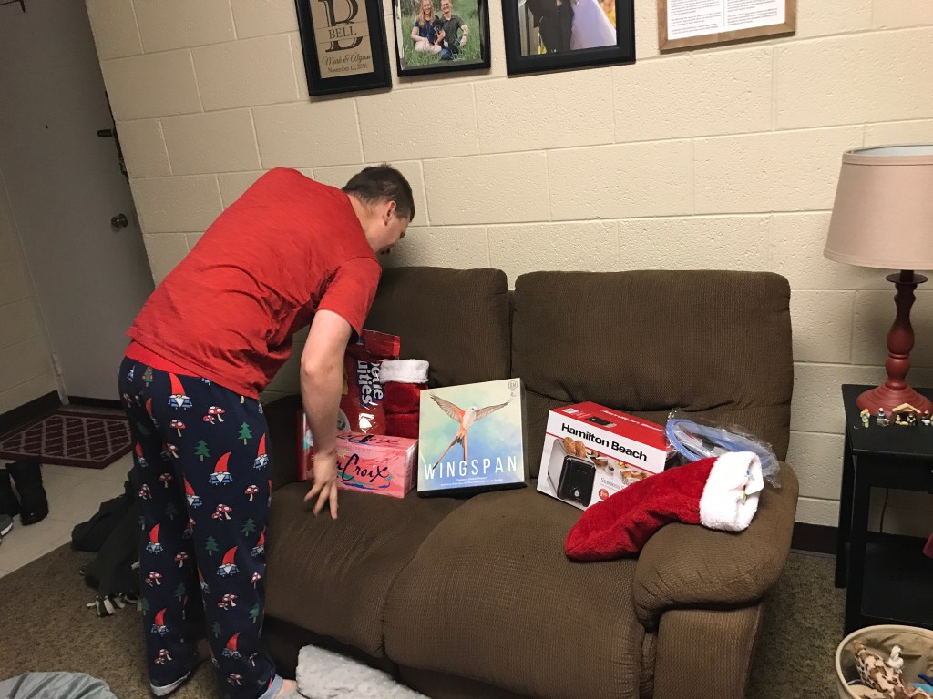 We spent the rest of Christmas Day at home! My parents came to deliver the exercise bike and to see our presents. While Mark put together my bike, I tried to learn how to play the new game we got, Wingspan.