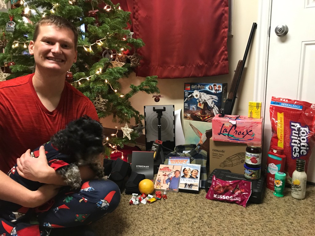 We did a little gift exchange for our anniversary too! Mark gave me the first two Fantastic Beasts movies. We’ve never seen them so we’re excited! I decided to give Mark five small gifts for our fifth anniversary- one for every sense. He got a watch band, bubble bath, potato chips, tickets to the cheap movie theater, and a pentatonix Christmas cd.