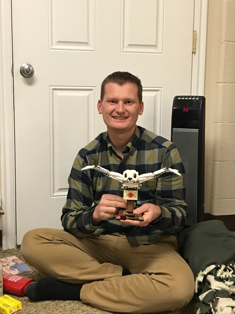 We spent the rest of the evening watching Home Improvement (one of Mark’s gifts) while Mark built his Lego set and I colored in my new coloring book. I was really impressed Mark built Hedwig in just one evening! It was a big and complicated Lego set. It’s really cool because you can turn a handle and her wings flap!