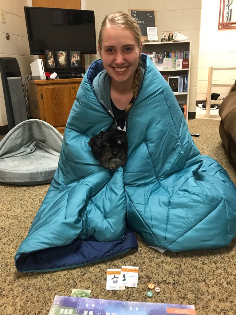 My dad dropped by with a surprise gift this week-a really warm camping blanket! He had given one to my mom for Christmas and I loved it so he brought one to me! It was perfect for a snuggly week inside when it was really really cold (like 1 degree) outside!
