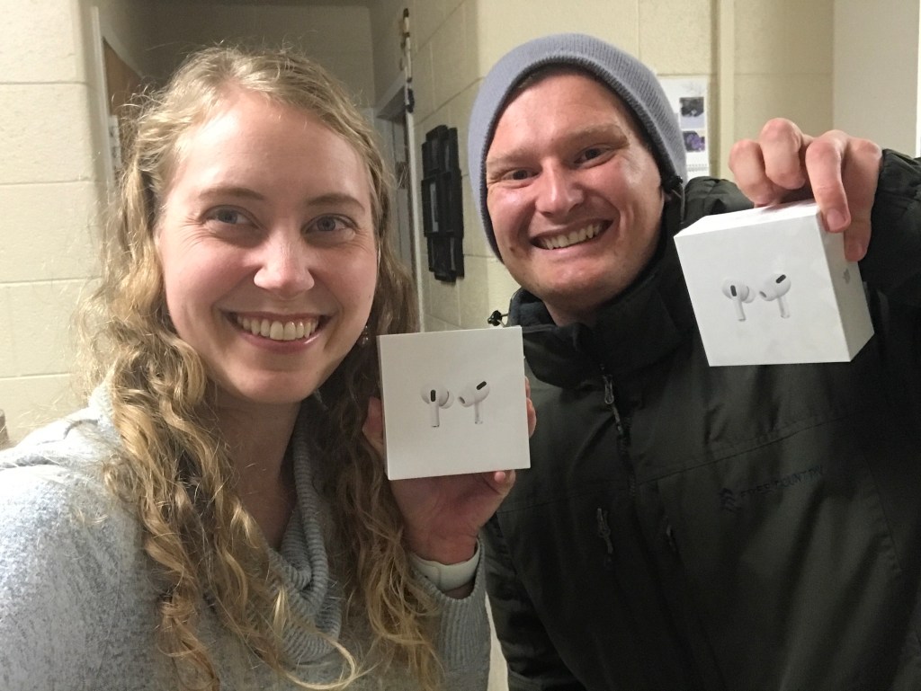 Monday was the last day of holiday break for me! I’ve been soaking up my free time by reading a ton! It’s been so fun! We also each got AirPods Pro on Monday! We saved up some of our own money and then used Christmas money from my parents to get them on a New Year’s sale. It’s so fun having nice technology! Mark put his coat on, anxiously waiting by the door when we could see the mailman at the box. And then the mailman brought them to our door haha.