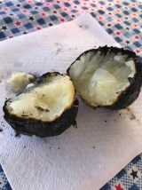 On Thursday we had a picnic dinner with my parents in their backyard. I grew up always looking forward to the Murray family Easter picnic and egg hunt. It wasn’t going to happen this year so I was happy to have a small version. We roasted hotdogs and my dad cooked potatoes in the fire. He puts the whole potato directly in the fire and it is the best way you’ll ever eat a potato.