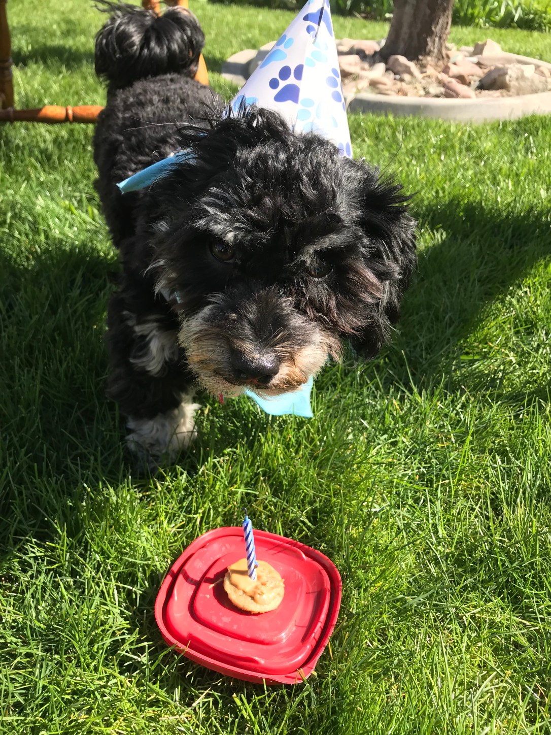 Wednesday was Flynn’s first birthday!!! We love him so much we decided it would be fun to celebrate!! On Sunday we had a little birthday party with my parents and my brother’s family. We had dog friendly cookies (made from banana, egg, and peanut butter) for Flynn and my brother’s dog, Ella. I made dog shaped sugar cookies for the rest of us. Our cute nieces even made a little gift for Flynn- a new rope toy and a veggie chew. He loved it! On his actual birthday we walked over to my campus work building where Flynn always gets a lot of love and attention from my boss and coworkers. I also took him to IFA and bought him a new rawhide chew. We enjoy taking him to pet friendly stores so he can practice behaving well in new places, and he loves all the attention he gets. He didn’t know why we did so many of his favorite things on Wednesday, but he sure seemed happy!
