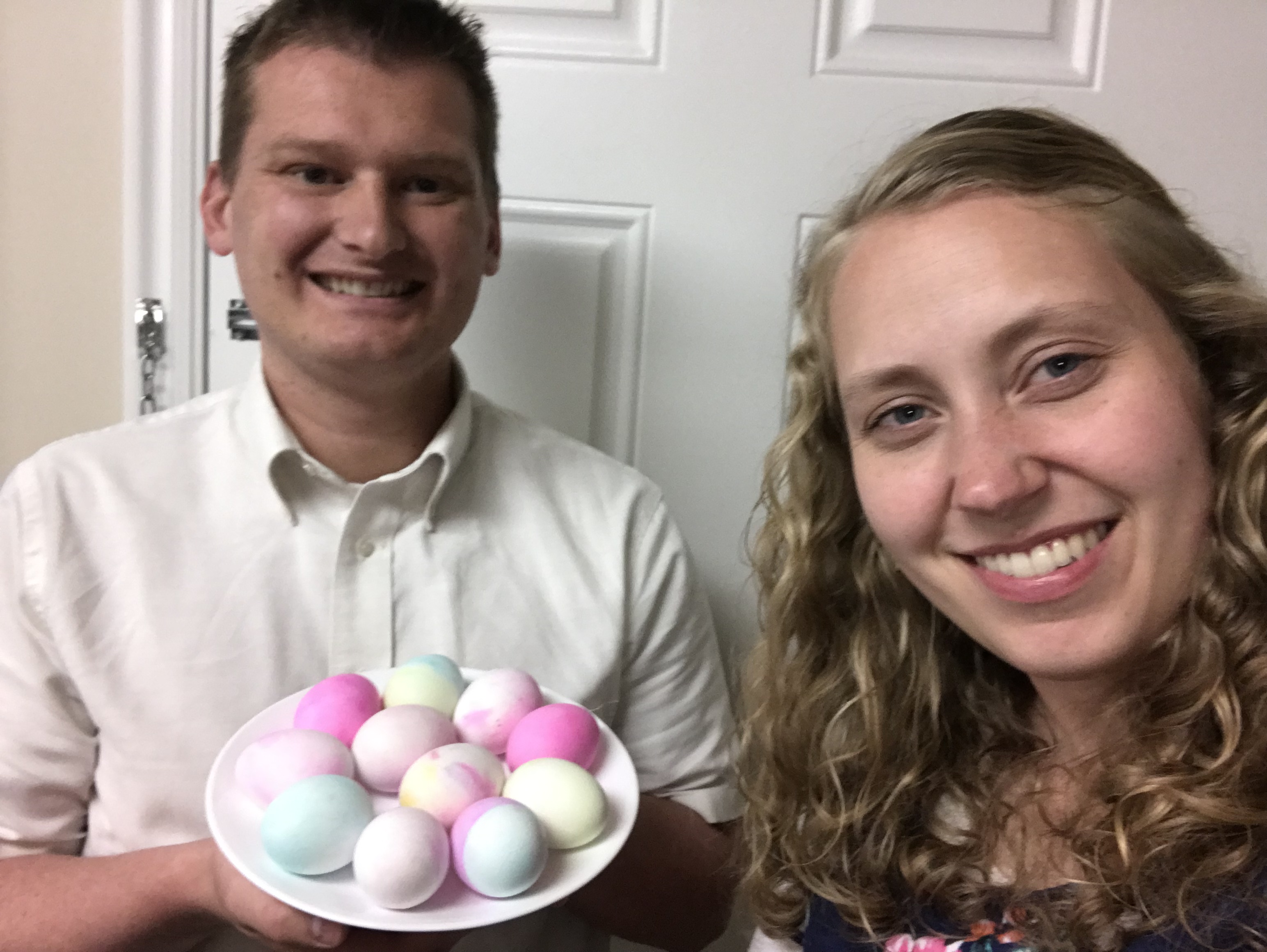Saturday we played Pickleball with my brother and his daughters. It was my first time playing, and we had a lot of fun! After playing we went to a vendor fair in Richmond. Mark’s sister and her husband were selling ties, dresses, and blouses there. We got a nice tie for Mark!! Sunday we dyed Easter eggs. It’s a fun tradition! Flynn at least enjoyed eating them!