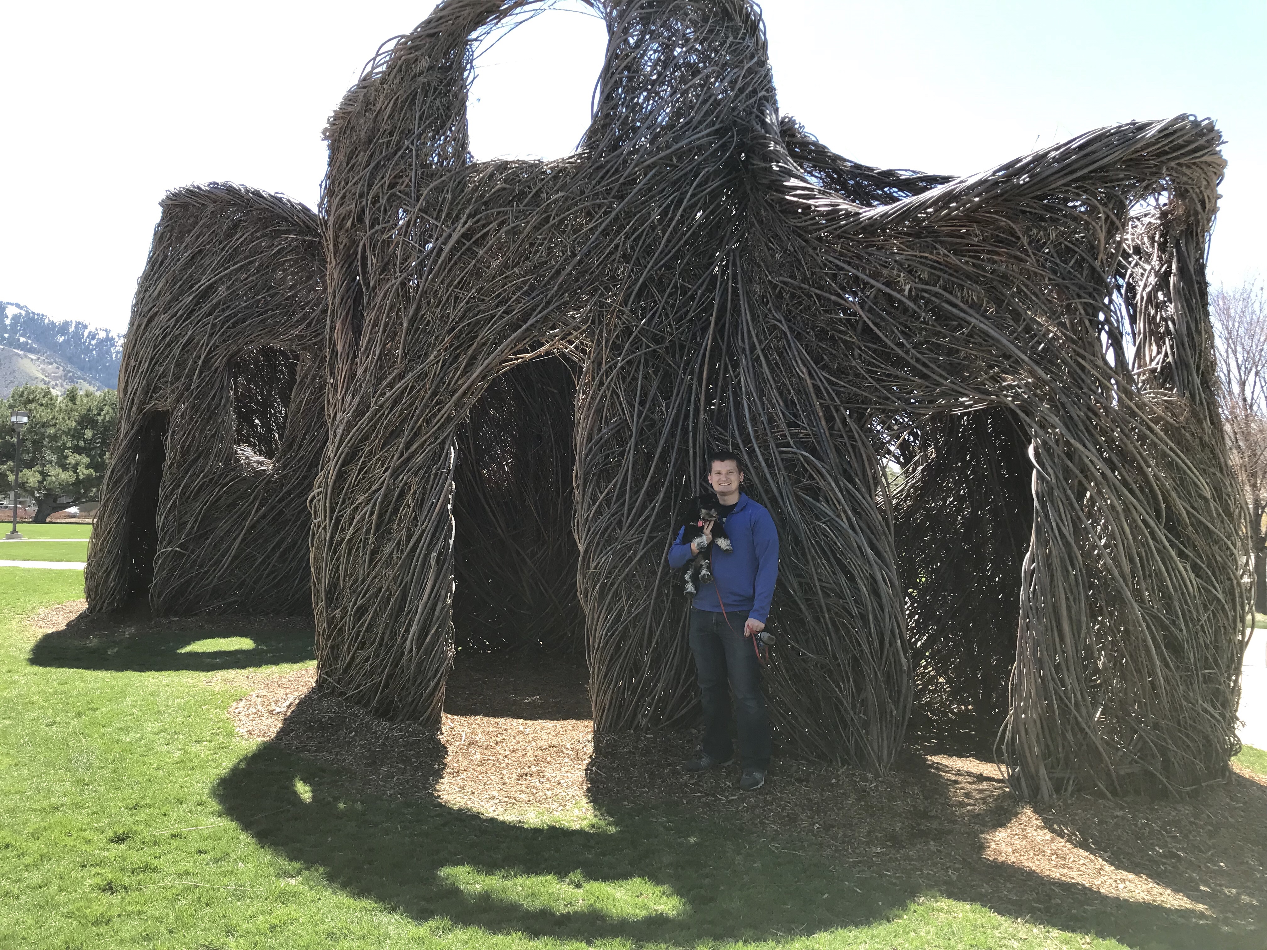 Mark is finishing up the Spring semester. He is working on a group project and presentation for his statistics class. He is also doing some more editing on a chapter he wrote for a textbook. Technically his professor will finish the writing and Mark will be listed as the Junior Author, but we are excited about his first work towards being published!  The chapter is about birds on the Great Salt Lake. Mark also used his mechanic skills to fix up our car a little! And we went on a walk to see the willow sculpture on campus!
