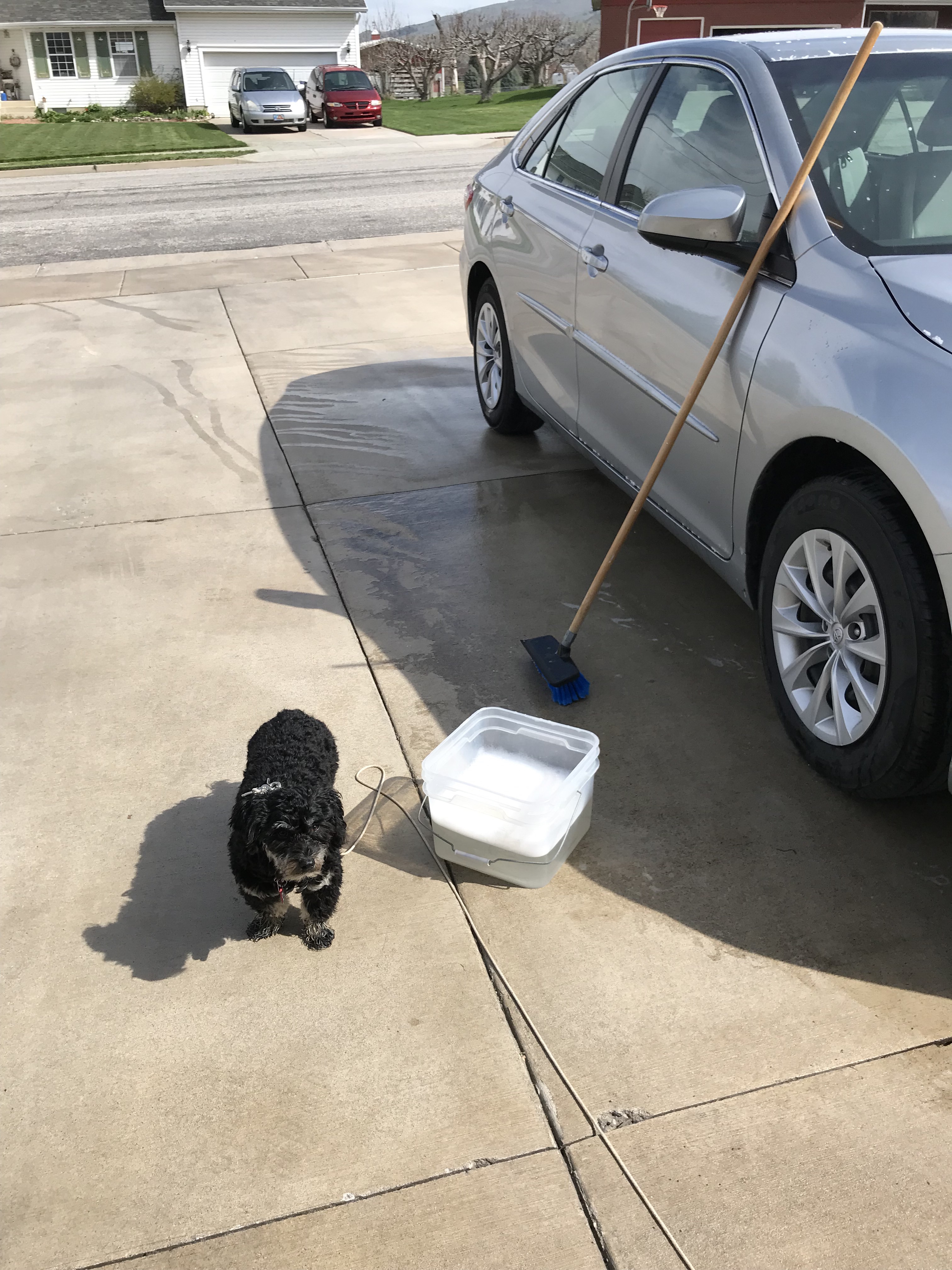 We certainly missed our puppy, but he had fun with my dad. My dad put him to work washing the car and planting the garden! My dad sent these cute pictures of Flynn at work!  It was a busy, but fun week!