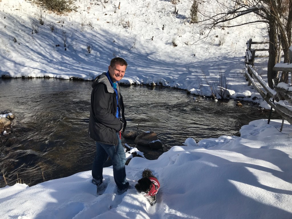 We worked in the morning, but took off a few hours in the afternoon to eat lunch together. We also drove up Logan Canyon to Temple Fork. We walked around there for just a few minutes. The snow was really pretty and Flynn had a ton of fun playing in it.
