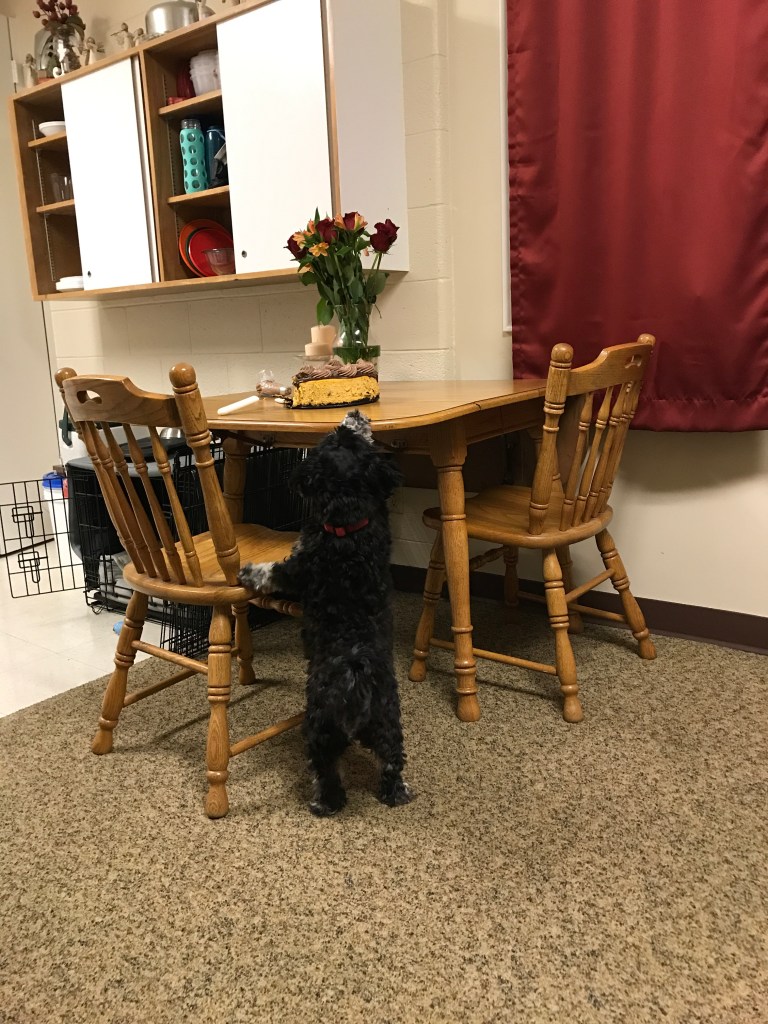 Poor Flynn really wanted the yummy food on the table! We gave him his own special dish with unseasoned chicken, bell peppers, and cheese.