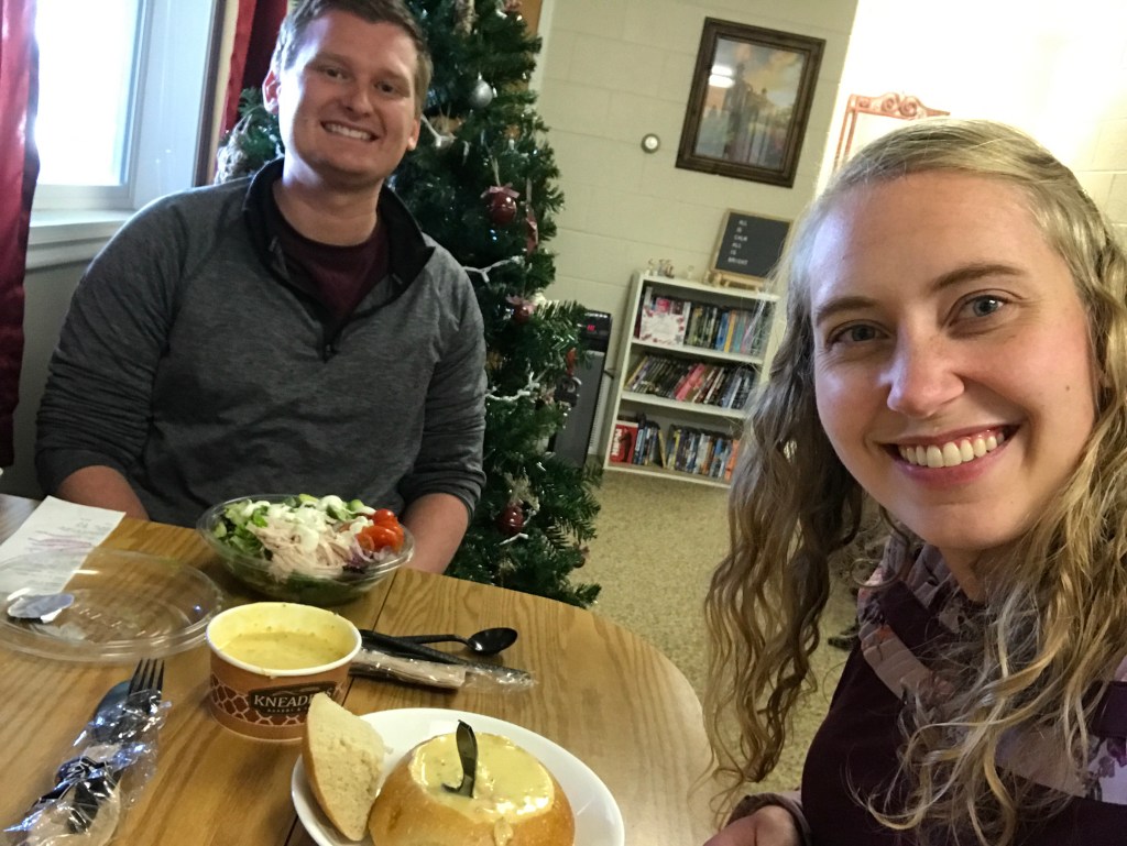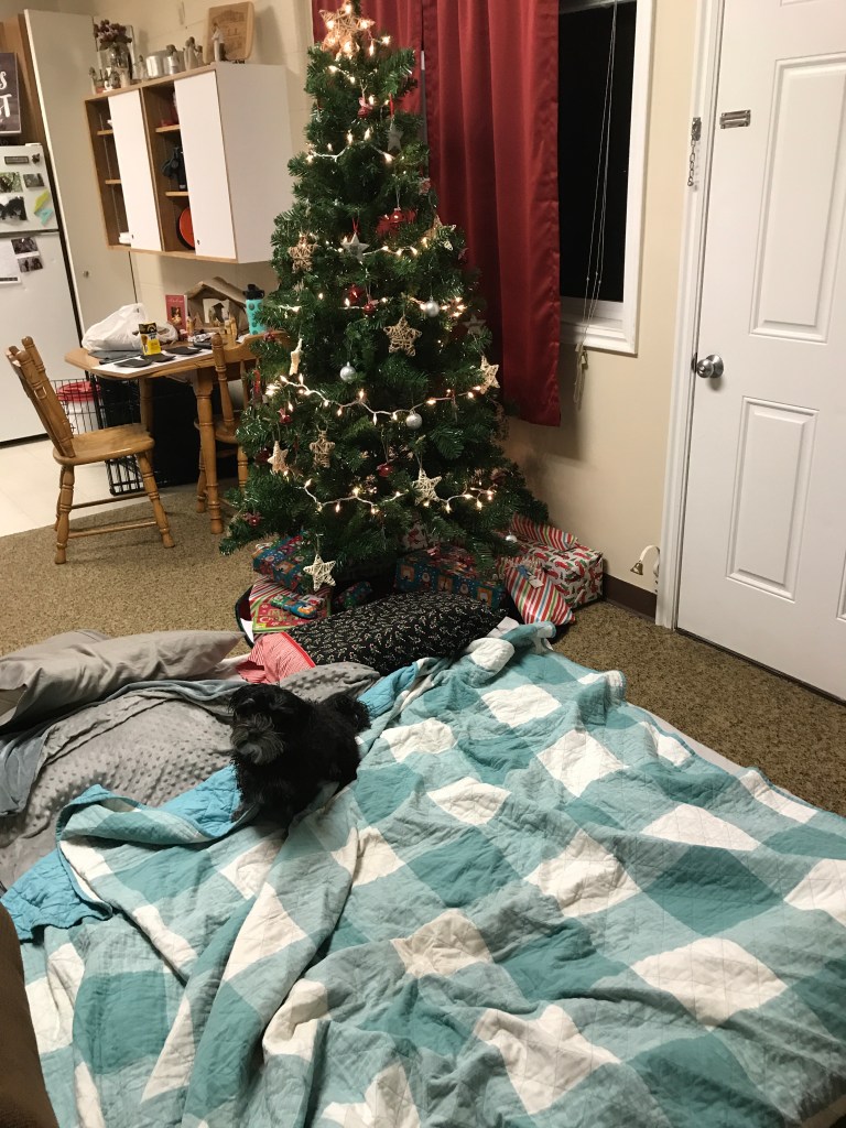 Saturday Mark spent five hours working on a group assignment. This has proven really hard and they’re hoping the professor can help next week. We ended the evening setting up a bed beneath the Christmas tree. We watched Christmas movies, read Christmas books, and chatted while eating muddy buddies. It was so fun! Although I think I’m getting too old to sleep on foam pads!!