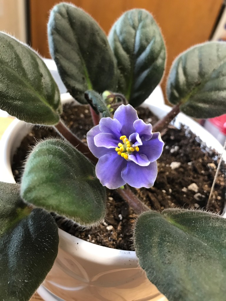 My African Violet is blossoming for the first time! I love plants, but have the hardest time keeping them alive. African Violets are pretty hardy, non-toxic for dogs, and beautiful, so I asked Mark to get me one for my birthday last summer. I named her Penelope 🙂