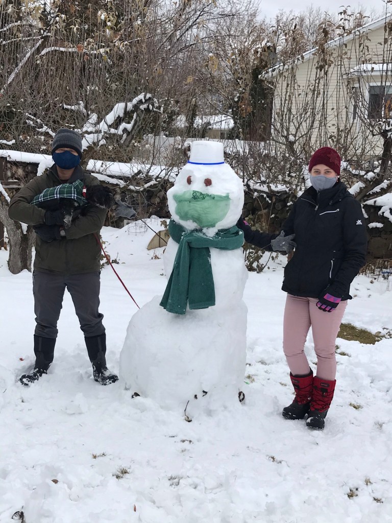 We finally got some good snow too!! Mark took a long lunch break on Friday so we could make a snow man (complete with mask).