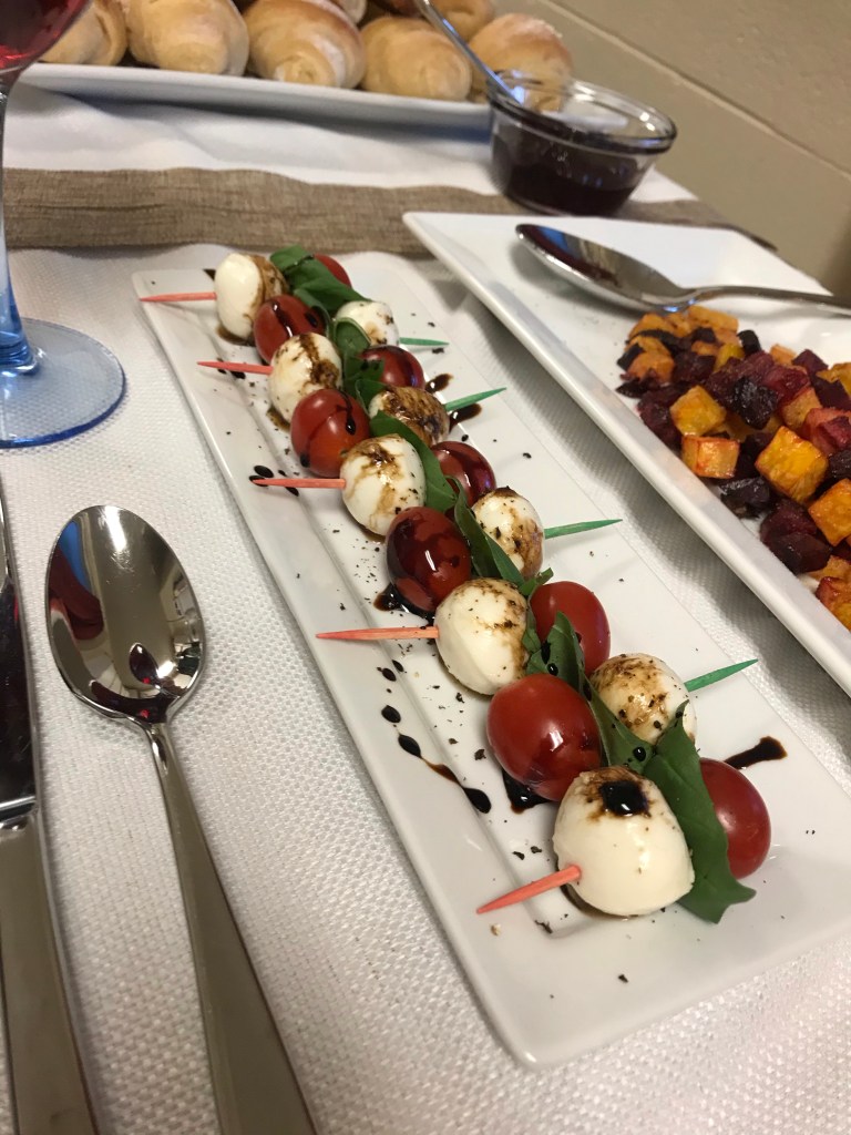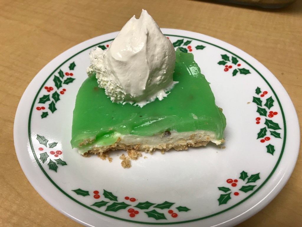 We made caprese appetizers, roasted beets, rolls, salad in the shape of a wreath, and honey mustard ham. My mom made extra “funeral potatoes” and shared some of those with us too! Then I made our traditional pistachio pudding dessert.