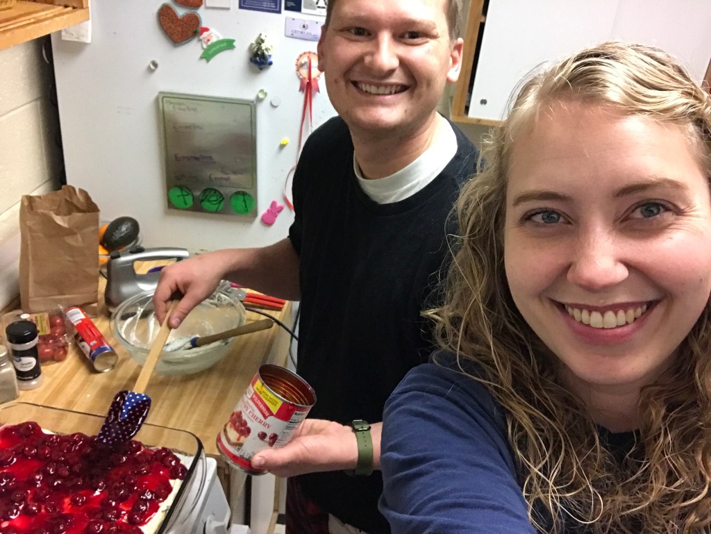 After checking out Santa’s surprises, we made a Cherry breakfast bake and put it in the oven. It’s a recipe I got from a member on my mission and it was our first time making it. It was delicious and so festive with the bright red color! It baked while we opened presents.