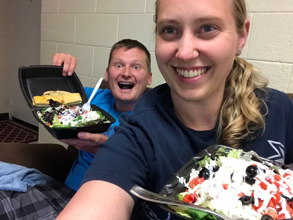 Mark chose pizza from firehouse pizzeria for lunch. We ordered online and did a curbside pickup. It turns out you get a much bigger side salad getting food to go! And the pizza was yummy, as always.